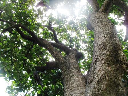 chicle over a period of many years. The Sapodilla Tree is a big one, sometimes 40 mts. high, often its trunk is very thick, and the bark is