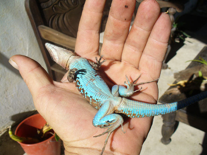 There are many beautiful varieties of skinks. Some with royal blue tails, this one with stripes, but all of them will drop their tail practically at the sight of danger. They grow back of course, but that just seems a little drastic to me.