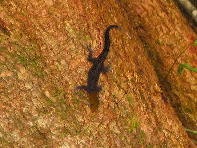 They are called "Calconetes" locally. OK, I'm cheating here because this is the closest I can find to what I have found so help me out. There are a lot of these around my house and in town but their heads are a rust color, they are about 3 inches long, the body is black and no white on the end of the tails. Unlike many geckos, this species lacks a voice. I know they are geckos, but I'm not sure if the name or species is correct. If you know, please let me know so I can find out more about them and correct this if it is wrong.
