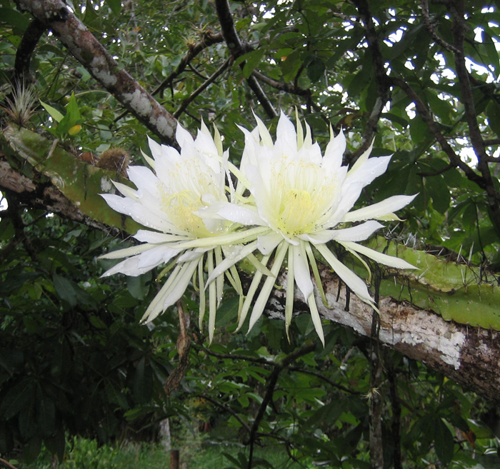 (Hylocereus undatus) Very rarely will you see these in bloom. The reason they are called Handsome by night is that they bloom only at night and the blooms die in the day.